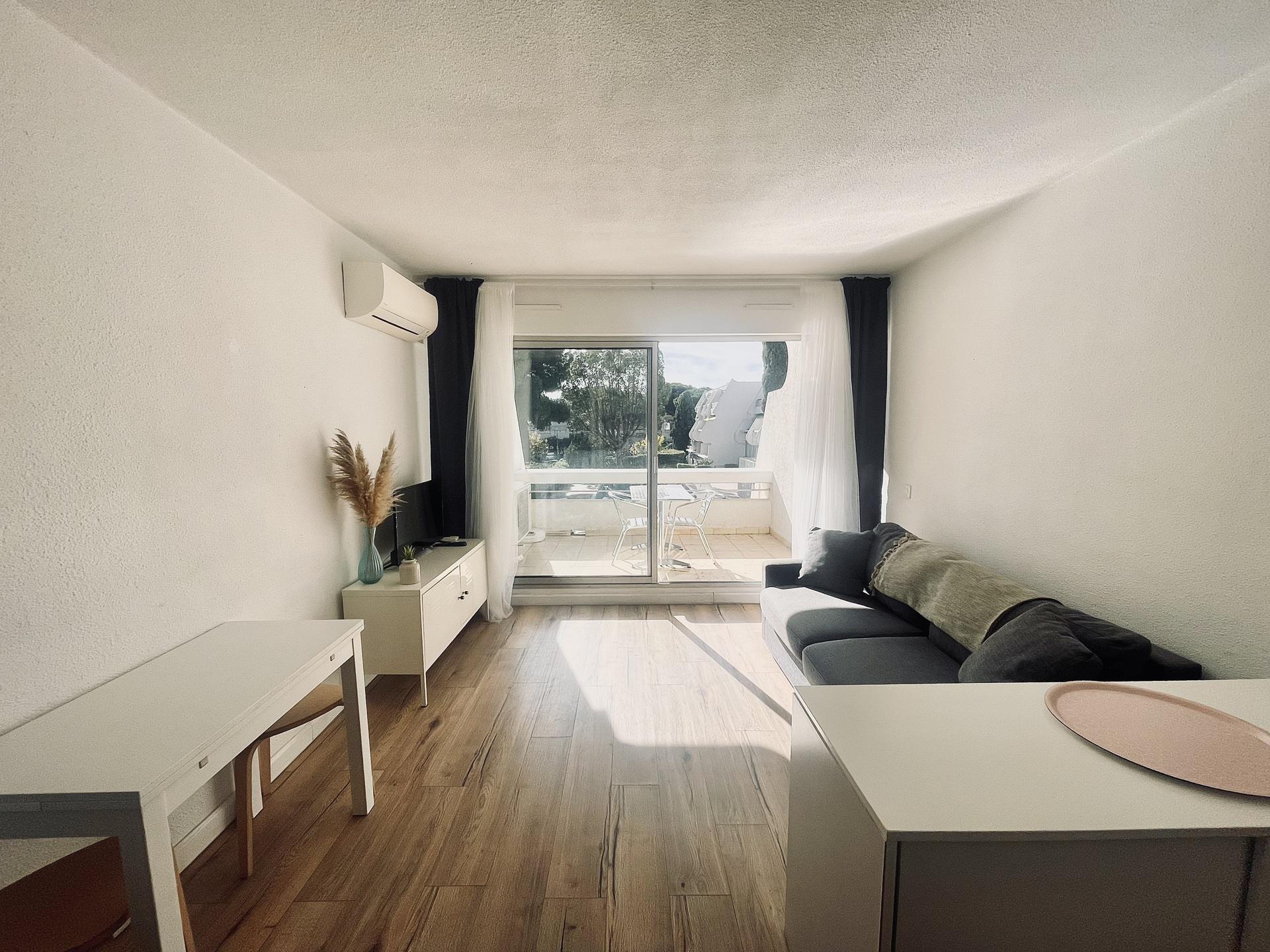Deux pièces cabine avec climatisation dans résidence avec piscine